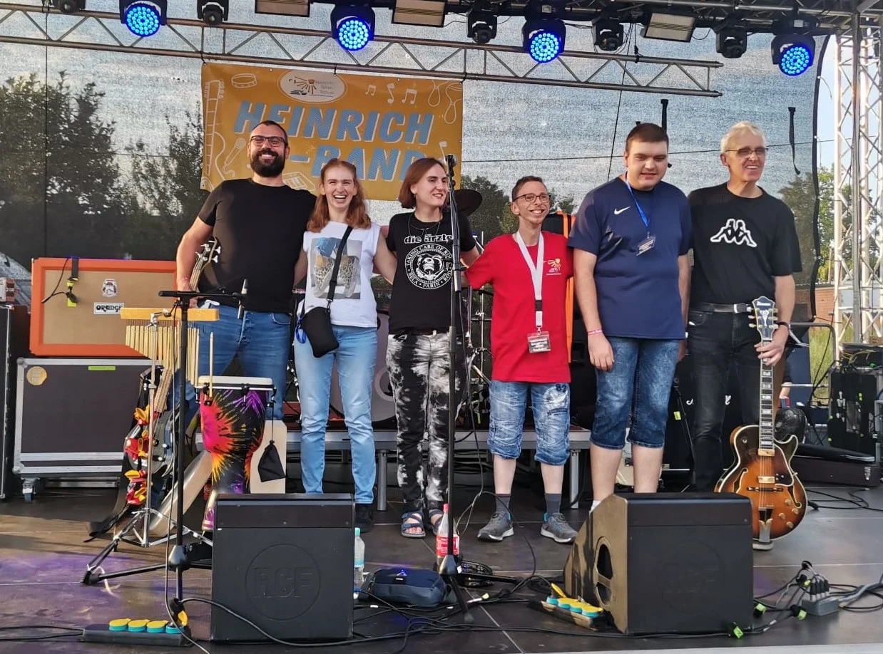 Vier ehemalige Schüler*innen der Heinrich-Tellen-Schule machen zusammen mit zwei Lehrern Musik – einfach aus Spaß an der Freude. Nach ihrem letzten Schulband-Auftritt beim Unicef-Weltkindertag 2017 in Warendorf wollten sie nicht aufhören – und so entstand die Heinrichband.
